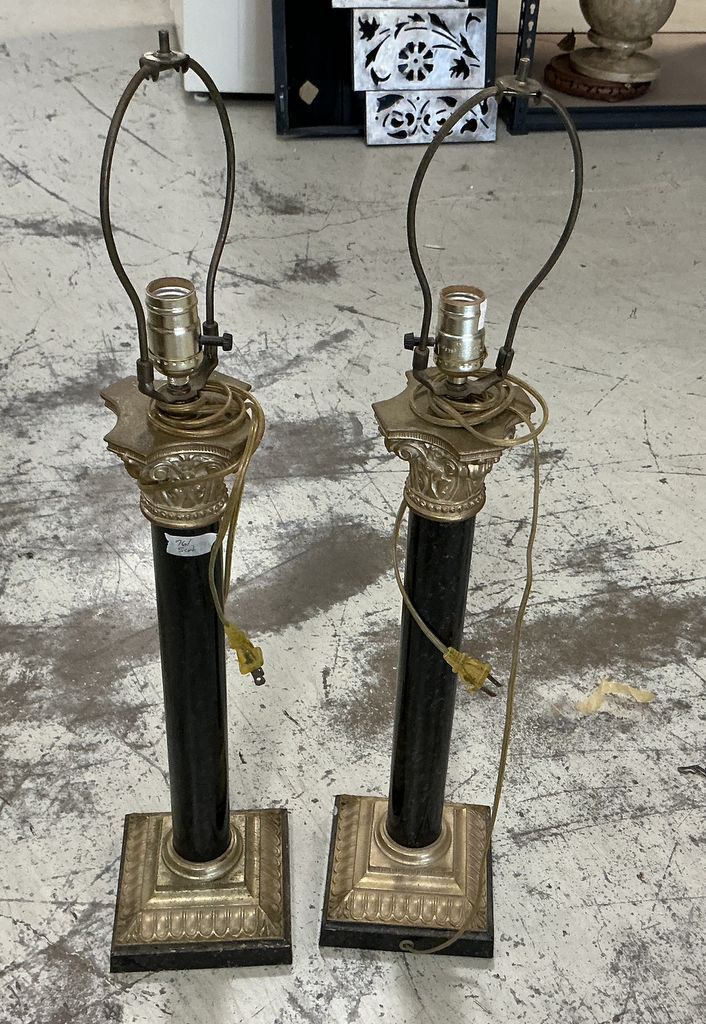 Pair of Candle Stick Neoclassical Lamps 32"h, no shades, Location Front Shelves Pair of Candle Stick Neoclassical Lamps 32"h, no shades, Location Front Shelves