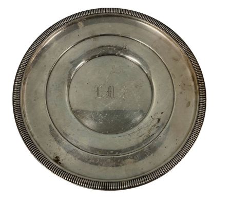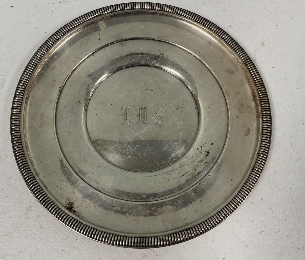 8.020 ozt Watrous Manufacturing Sterling 10" Plate, monogrammed, Location Case by Office 8.020 ozt Watrous Manufacturing Sterling 10" Plate, monogrammed, Location Case by Office