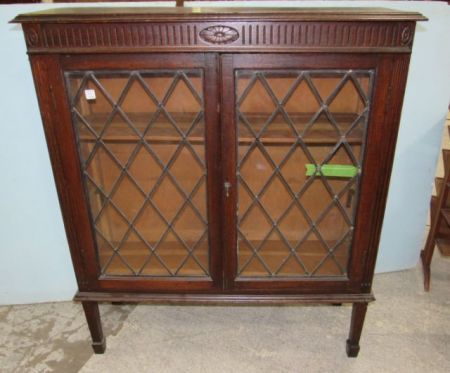 322 Vintage Oak Leaded Glass Display Cabinet