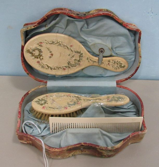 Brush and Mirror has cracks, 3"h., 9"w. Brush and Mirror has cracks, 3"h., 9"w.