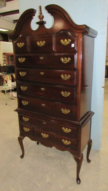 Seven Drawers, broken arch crest design, 77"h., 38"w. Seven Drawers, broken arch crest design, 77"h., 38"w.