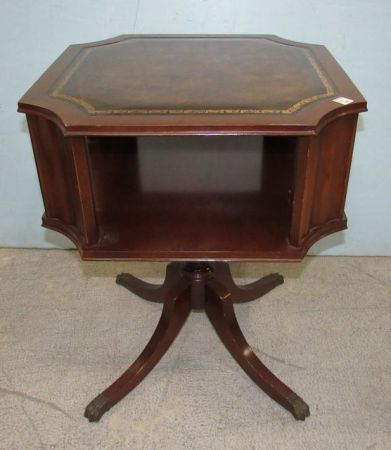 Pedestal, brass claw feet, two tier, has some scratches on bottom shelf, 27"h., 22"w. Pedestal, brass claw feet, two tier, has some scratches on bottom shelf, 27"h., 22"w.