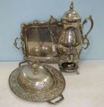 539 Silver Plate Coffee Urn, Meat Dome and Trays