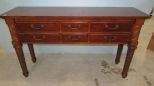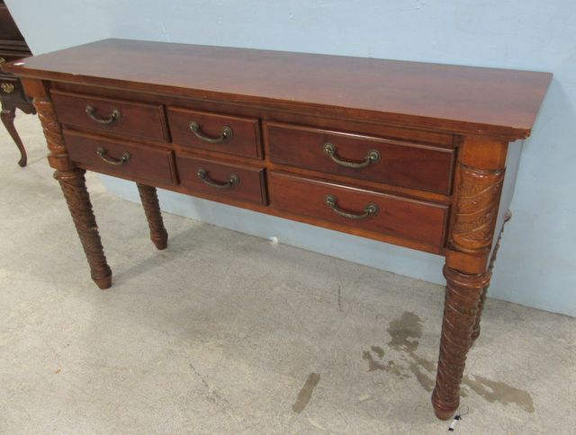 Machine carved legs, 6 drawers, has scratches, 36"h., 62"w., 18"d. Machine carved legs, 6 drawers, has scratches, 36"h., 62"w., 18"d.