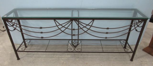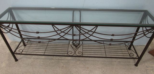 Glass top, two tier, 28"h., 72"w. Glass top, two tier, 28"h., 72"w.