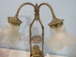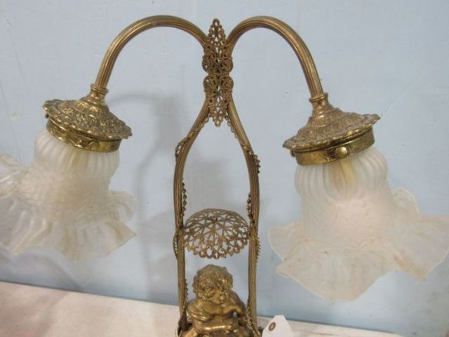 Reproduction, glass shades, 21"h. Reproduction, glass shades, 21"h.