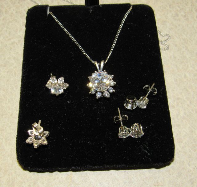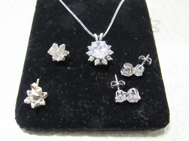 752 Clear Stone Sterling Necklace and Pair of Clear Stone 925 Earrings