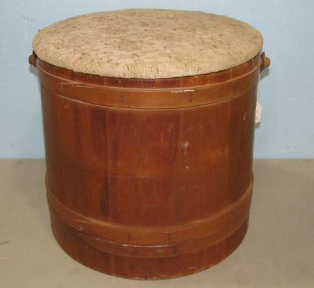 With sewing materials, 14"h., 15"dia. With sewing materials, 14"h., 15"dia.