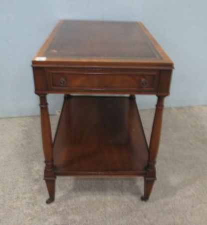 One drawer, on wheels, worn condition, 22"h., 15"w., 24"d. One drawer, on wheels, worn condition, 22"h., 15"w., 24"d.