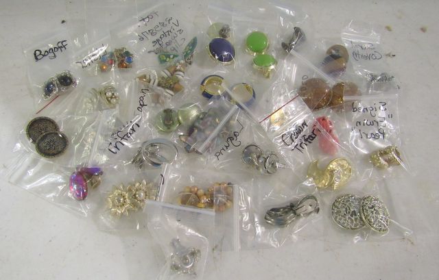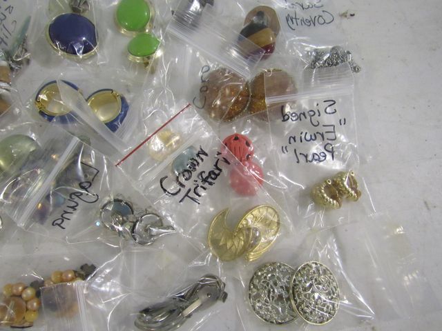 28 pairs, Coro, sweater clip, Crown trifari, Bogoff, Sarah Coventry, Signed "Erwin Pearl", Laguna, Lisner, 28 pairs, Coro, sweater clip, Crown trifari, Bogoff, Sarah Coventry, Signed "Erwin Pearl", Laguna, Lisner,
