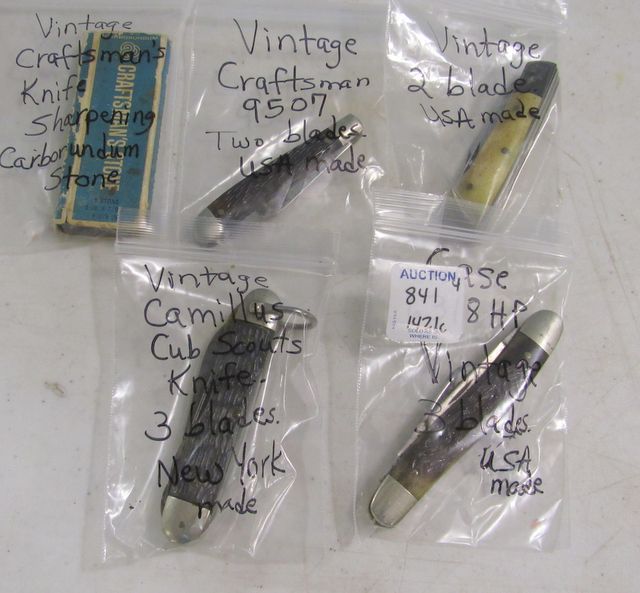 Vintage Craftman's Knife Sharpening stone, Two Blade USA Made, Vintage Camillus Cub Scout Knife, Case 6318HP 3 blade. Craftsman 9507 Two blades. Vintage Craftman's Knife Sharpening stone, Two Blade USA Made, Vintage Camillus Cub Scout Knife, Case 6318HP 3 blade. Craftsman 9507 Two blades.