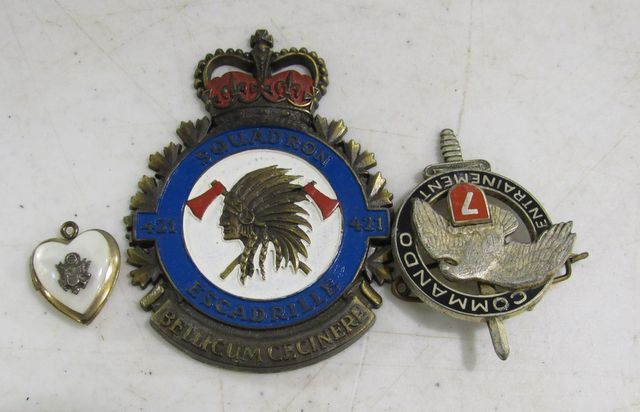 French Military Commando Medal, Royal Canadian Air Force-Squadron 421, 1940s Military Sweetheart Locket marked 12-20 on sterling, 1/20 of 12k gold on sterling. French Military Commando Medal, Royal Canadian Air Force-Squadron 421, 1940s Military Sweetheart Locket marked 12-20 on sterling, 1/20 of 12k gold on sterling.