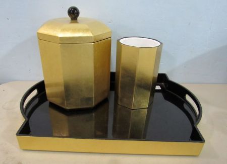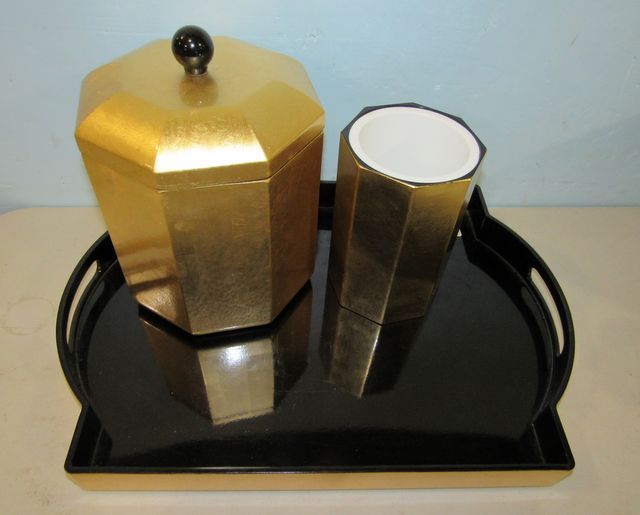 870 Nancy Calhoun Designs Lacquer Ware Tray, Wine, and Ice Bucket