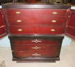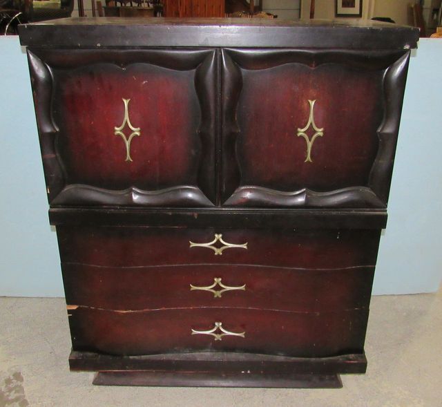 Needs work, has wear, two door within interior drawers, three bottom shelves, 50"h., 42"w. Needs work, has wear, two door within interior drawers, three bottom shelves, 50"h., 42"w.