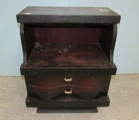 Needs work, has wear, one drawer, 28"h., 22"w. Needs work, has wear, one drawer, 28"h., 22"w.