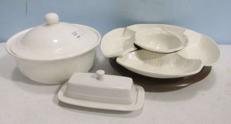 989 Chip & Dip Turntable, White Butter Dish, and Casserole Bowl