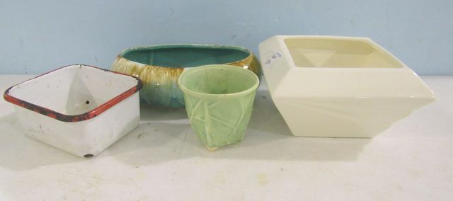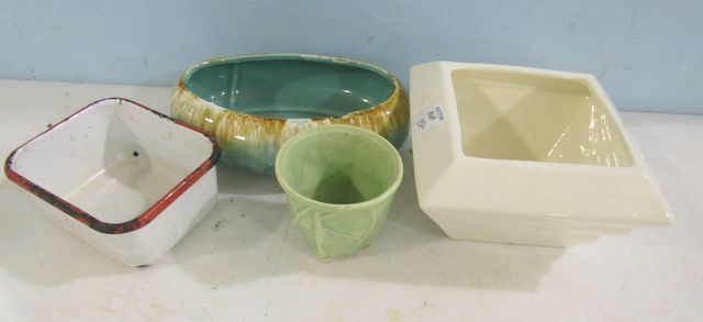 1069 Roseville Pottery Bowl, McCoy Leaf Vase, Haeger Planter, Enamel Tin