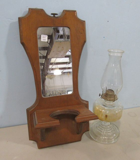 1075 Glass Oil Lamp with Mirrored Wood Wall Mount