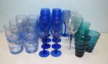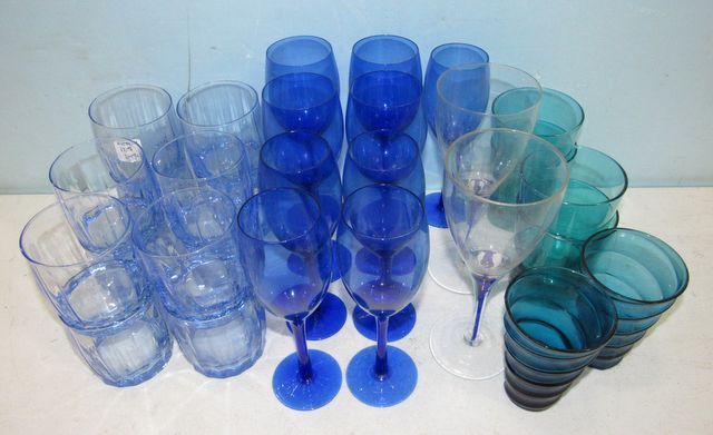 Twelve light blue Glasses, Nine Cobalt wine glasses, two wines, Twelve light blue Glasses, Nine Cobalt wine glasses, two wines,