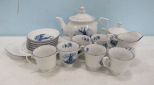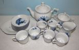 Creamer, sugar, pitcher, tea cups, saucers, underplate. Creamer, sugar, pitcher, tea cups, saucers, underplate.
