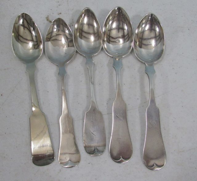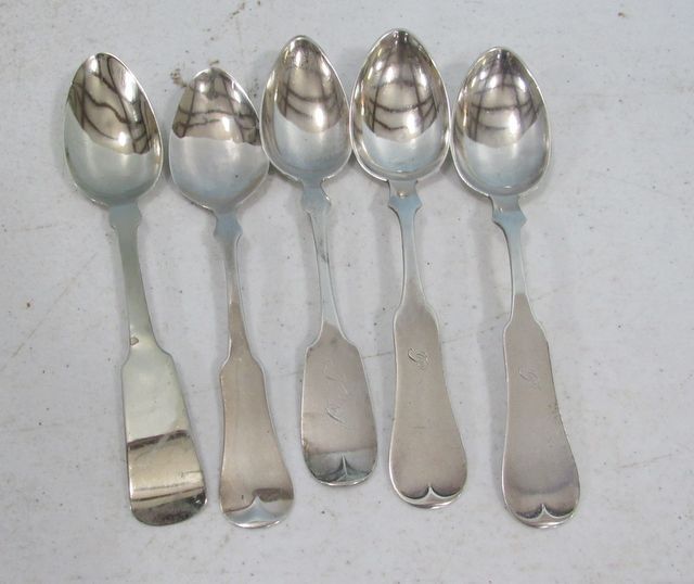 Some Monogrammed, Two Dunme & Co Sterling spoon, A.H.S. Layton Spoon, Two coin Silver Spoons. Some Monogrammed, Two Dunme & Co Sterling spoon, A.H.S. Layton Spoon, Two coin Silver Spoons.