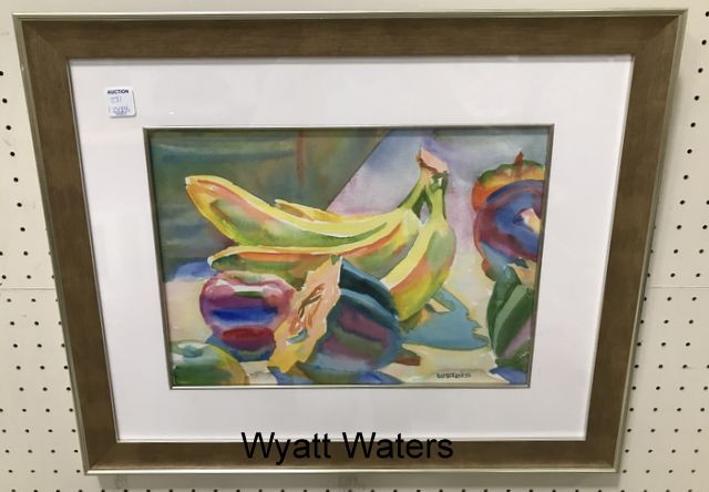 Wyatt Waters Still Life Watercolor, signed lower right, matted, frame is 18 1/2"h. 22 1/2"w. Wyatt Waters is a watercolor master who works solely on location, recipient of the Mississippi Governor’s Award for artistic excellence, well known Mississippi Artist. Wyatt Waters Still Life Watercolor, signed lower right, matted, frame is 18 1/2"h. 22 1/2"w. Wyatt Waters is a watercolor master who works solely on location, recipient of the Mississippi Governor’s Award for artistic excellence, well known Mississippi Artist.
