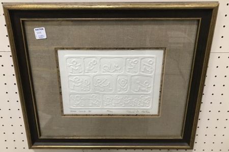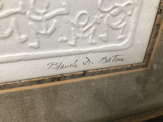 Blanche Batson "Happy Child III" Embossed paper, pencil signed, numbered 44/200, matted, Born in Roseland, Mississippi, teacher, artist, was married to Blair Batson, frame is 15"h., 18"w. Blanche Batson "Happy Child III" Embossed paper, pencil signed, numbered 44/200, matted, Born in Roseland, Mississippi, teacher, artist, was married to Blair Batson, frame is 15"h., 18"w.