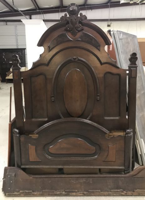 Antique High Back Victorian Style Bed, 55" wide, carved crest, walnut, age wear, sturdy, wood rails. Antique High Back Victorian Style Bed, 55" wide, carved crest, walnut, age wear, sturdy, wood rails.