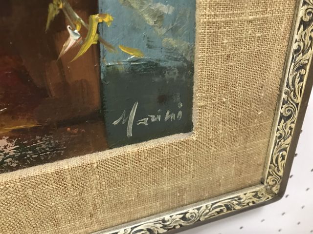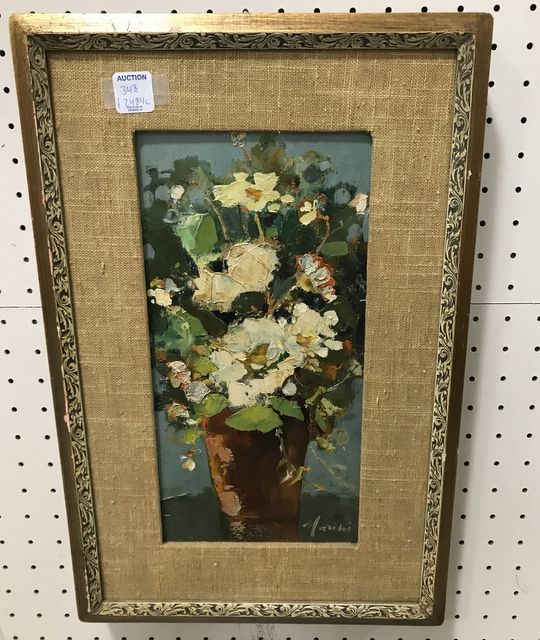 Original Oil Painting "Floral" by Marini, signed, frame is 19"h., 12"w. Original Oil Painting "Floral" by Marini, signed, frame is 19"h., 12"w.