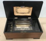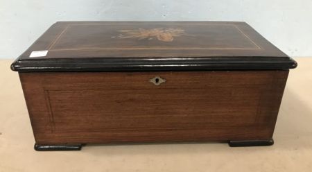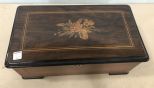 Late 19th Century Swiss Cylinder Music Box, play 10 songs, will play, no key, rose inlaid top, good condition, 7"h., 18"w., 10"d. Late 19th Century Swiss Cylinder Music Box, play 10 songs, will play, no key, rose inlaid top, good condition, 7"h., 18"w., 10"d.