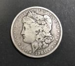 1901 Morgan Dollar Coin, good condition, circulated. 1901 Morgan Dollar Coin, good condition, circulated.