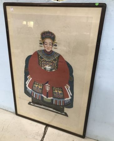 Vintage Chinese Hand Painted "Empress" on Silk, glassed, frame is 46"h., 31"w. Vintage Chinese Hand Painted "Empress" on Silk, glassed, frame is 46"h., 31"w.