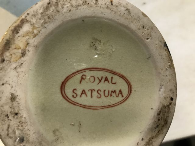 Royal Satsuma Hand Painted Vase, Geisha imagery, gold gilt, beaded, good condition, 10"h. Royal Satsuma Hand Painted Vase, Geisha imagery, gold gilt, beaded, good condition, 10"h.