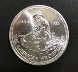 The American Prospector 1985 Silver Coin, Engelhard, .999 fine silver. The American Prospector 1985 Silver Coin, Engelhard, .999 fine silver.