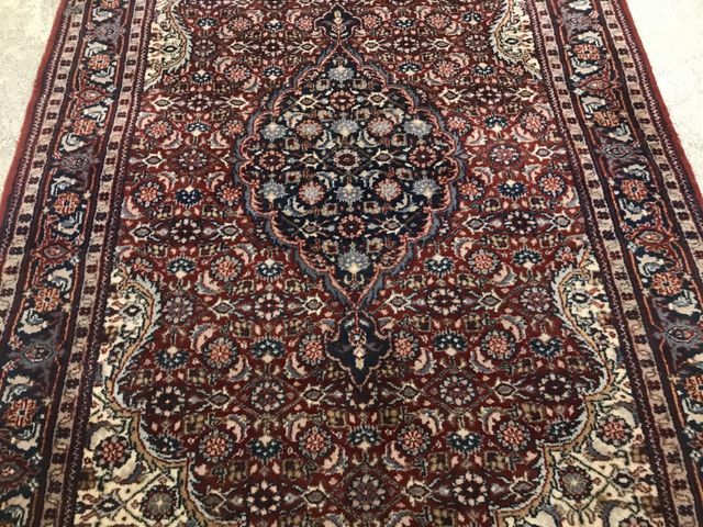 Jaipur Double Weft India Wool Rug, red and blue, hand knotted in India, 3'8 x 6'. Jaipur Double Weft India Wool Rug, red and blue, hand knotted in India, 3'8 x 6'.