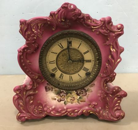 453 W.L. Gilbert Cranberry Porcelain Mantle Clock