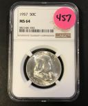 1957 Franklin Silver Half Dollar 50c, MS 64, slabbed NGC. 1957 Franklin Silver Half Dollar 50c, MS 64, slabbed NGC.