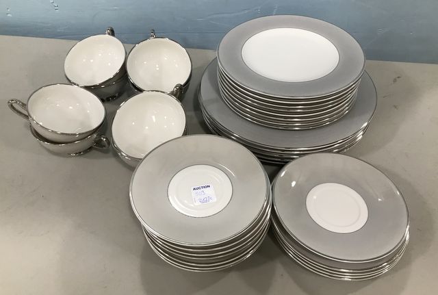 Debutante Syracuse China, five dinner plates, 7 saucers, 8 cups, 8 salad plates, 4 dessert plates. Debutante Syracuse China, five dinner plates, 7 saucers, 8 cups, 8 salad plates, 4 dessert plates.