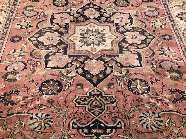 Hand Made Persian Area Rug, pink, blues, no stains, condition is above average, 6' x 9'9. Hand Made Persian Area Rug, pink, blues, no stains, condition is above average, 6' x 9'9.