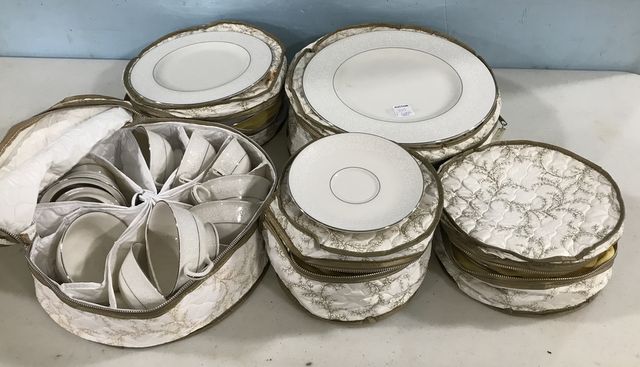 Pickard "Brocade" China Set, 11 dinner plates, 8 salad plates, 8 desserts, 13 saucers, 8 cups, sugar, in cases. Pickard "Brocade" China Set, 11 dinner plates, 8 salad plates, 8 desserts, 13 saucers, 8 cups, sugar, in cases.