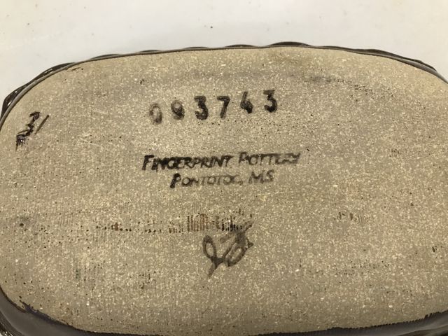 FingerPrint pottery dish, Pontotoc, MS, stoneware, glazed, 7"w., 5"d. FingerPrint pottery dish, Pontotoc, MS, stoneware, glazed, 7"w., 5"d.