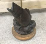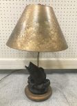 Carved Wood Base Table Lamp, with fish illuminated shade, 23"h. Carved Wood Base Table Lamp, with fish illuminated shade, 23"h.