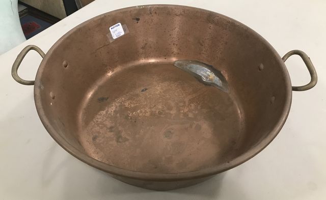 Vintage Copper Pan, handles, has some wear, 4 1/2"h., 17"dia. Vintage Copper Pan, handles, has some wear, 4 1/2"h., 17"dia.