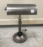 Modern Silver Tone Metal Bankers Desk Lamp, 18"h. Modern Silver Tone Metal Bankers Desk Lamp, 18"h.