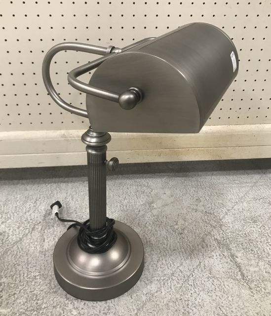 638 Modern Silver Tone Metal Bankers Desk Lamp