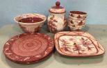 645 Gail Pittman "Toile Red" Pottery Pieces