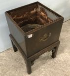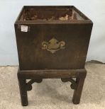Chippendale Style Cherry Planter Stand, rusted tin lining, handled, needs cleaning, 20"h., 13"w. Chippendale Style Cherry Planter Stand, rusted tin lining, handled, needs cleaning, 20"h., 13"w.
