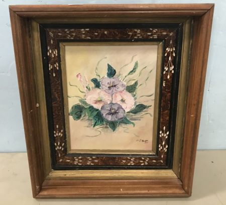 G.S. Moore 1950 Still Life Floral Painting, signed lower right, painting on board, wood frame, 16"h., 14"w. G.S. Moore 1950 Still Life Floral Painting, signed lower right, painting on board, wood frame, 16"h., 14"w.