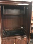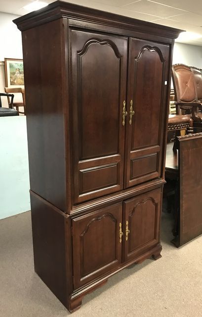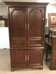 Modern Cherry Entertainment Cabinet, two piece, four door, early american style, 79"h., 40"w., 22"d. Modern Cherry Entertainment Cabinet, two piece, four door, early american style, 79"h., 40"w., 22"d.
