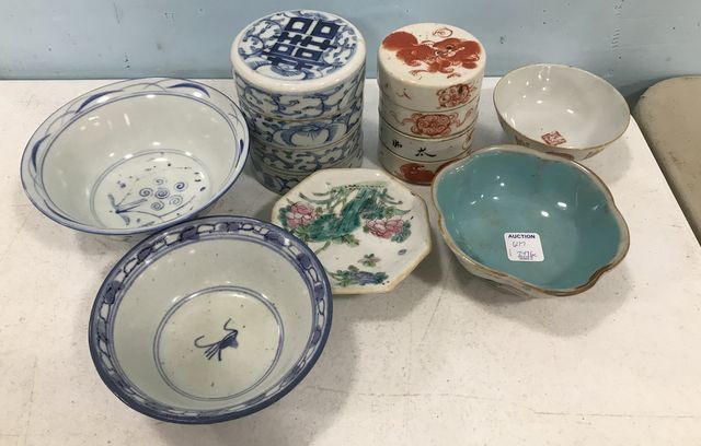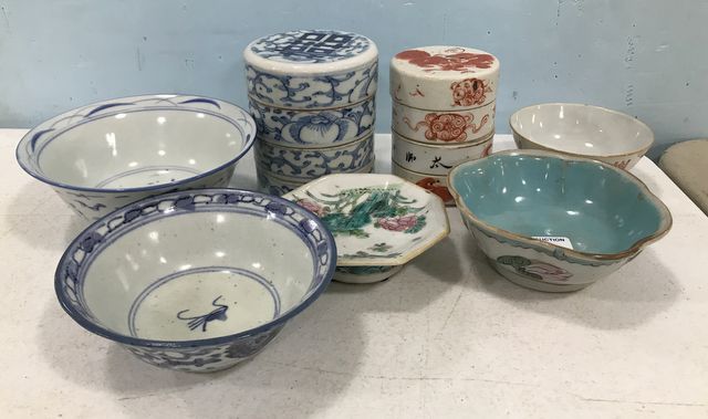 Group of Porcelain nest stacking, 5 porcelain bowls, hand painted. Group of Porcelain nest stacking, 5 porcelain bowls, hand painted.